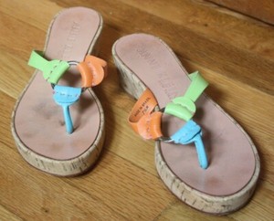 Anne Klein 7 5 M Multi Color Block Thong Sandal Low Wedge Cork
