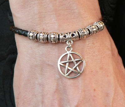 Silver Pentacle Bracelet Synthetic Leather Thong Pagan Solstice