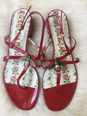 Gucci Soko Red Patent Strappy Bee Thong Sandals Size 39 5 Us 9 5