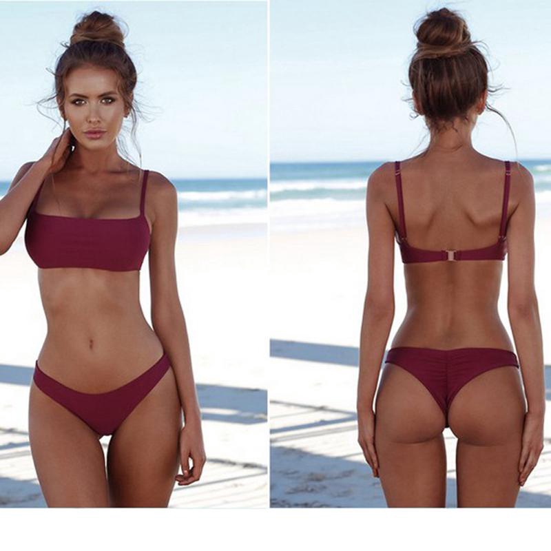 Sexy Bikinis Set Women Solid Swimwear Brazilian Micro Thong Bikini